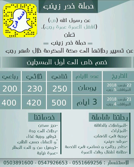 🌟تعلن حملة خدر زينب عن تسيير رحلاتها الى🌟 مكة المكرمة خلال شهر رجب كل اربعاء وخميس